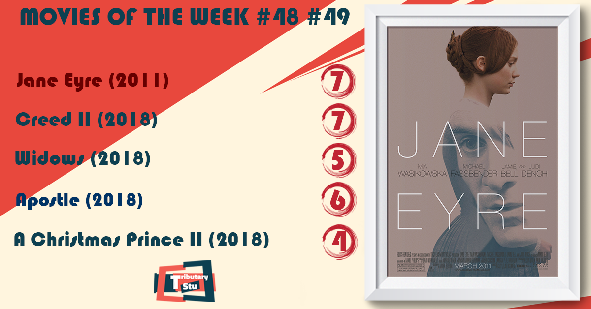 - Jane Eyre (2011): I might be more of a Jane Austen fan than of the Brontë sisters – due to the wit and lightness of the former’s stories. Yet, Jane Eyre, as embittered as it is in its tale of forlorn love, class struggles and fem-lib, caught my liking. The sombre tone might feel heavy at times, especially pushing the two hour mark. It’s the impressions that Fassbender and Mia Wasikowska make which ease the burden and make Jane Eyre a captivating watching. 7/10