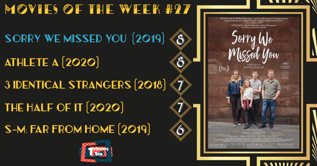 Sorry We Missed You (2019): Even in his 80s, director Ken Loach is razor sharp in his critique of social disequilibrium and shortcomings. The movie follows up on the exceptional I, Daniel Blake (2016), as Loach takes aim at the gig economy and how it perpetuates the cycle of poverty. Focusing on a working class family in Newcastle, we experience the struggles of Ricky, Abbey and their two children – to each, their own. It’s not an unfamiliar tale to anyone who’s ever read up on or experienced how the big players in the gig economy do business, but what gives SWMY depth is the glimpses of humanity that shine through all the drama. You’re bound to be left reeling emotionally by the end and that’s a good thing, in all its tragedy. 8/10