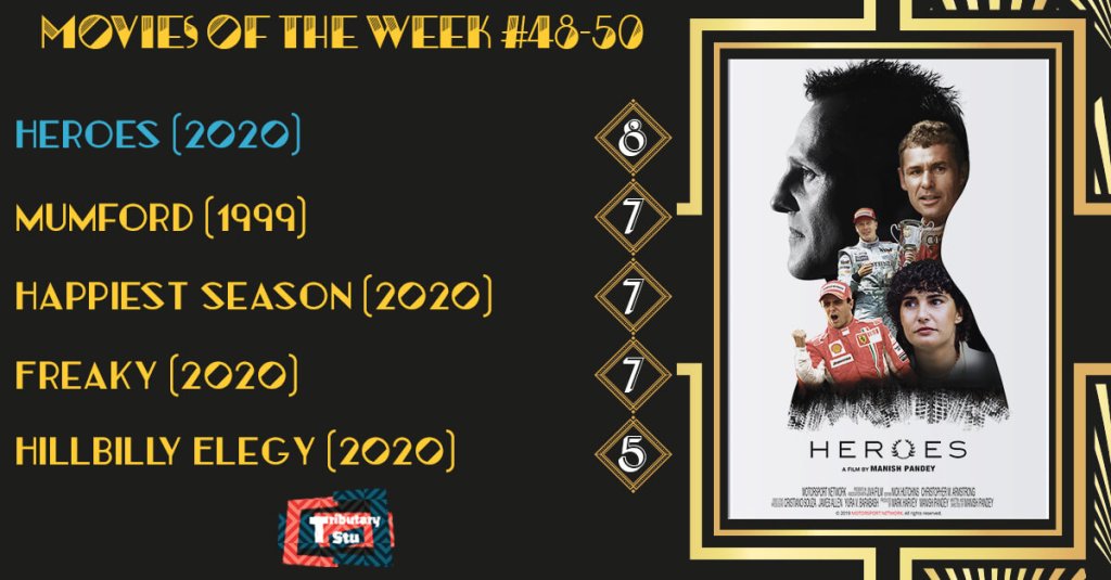 Heroes (2020): Coming from Manish Pandey, writer and executive producer on Senna (2010), this latest documentary on the lives, careers and intertwined fates of five memorable racing drivers of the 80s, 90s and 2000s is just tough to take. Parts feel distinctly staged, insights could have been more revealing, but the movie does very, very well in capturing the protagonists’ states of mind and the emotions going with them. For me, it was indeed terribly emotional, as beyond the stories of Hakkinen, Massa, Mouton and Kristensen lies that of Michael Schumacher, to whom I attach so many of the joys and tribulations of my youth. Pandey might not have Asif Kapadia’s flair, but he shares the sense for tragedy and loss, which underlies almost everything in Heroes. Mandatory viewing for enthusiasts. 8/10