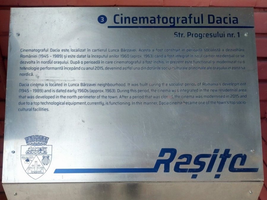 The city stretches along the Bârzava river, making for an unwieldly layout that’s atypical for most settlements. This is why you won’t find the Dacia cinema in the city center, but rather in the more commercial Lunca Bârzavei neighbourhood, close to the Transfiguration Church, the city hospital and a couple of large retailers. Built in the 1960s, the cinema was an important venue until its closure soon after the 1989 revolution, reopening more than twenty years later, in 2015. The building still oozes a communist architecture, although it is supposedly one of the structures to be renovated and redesigned using money from the PNRR (National Recovery and Resilience Plan) in the near future.